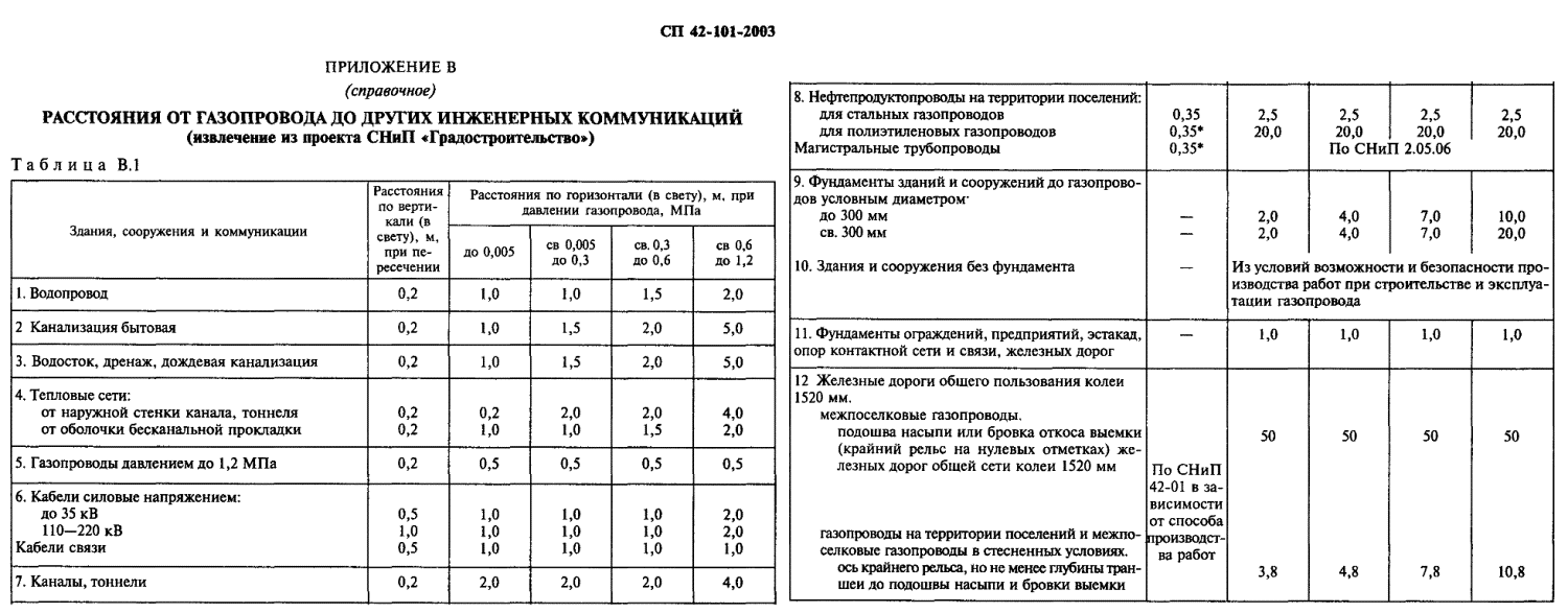 - газопровод изготовлен из полиэтиленовых труб (максимум на 3 м с каждой стороны);