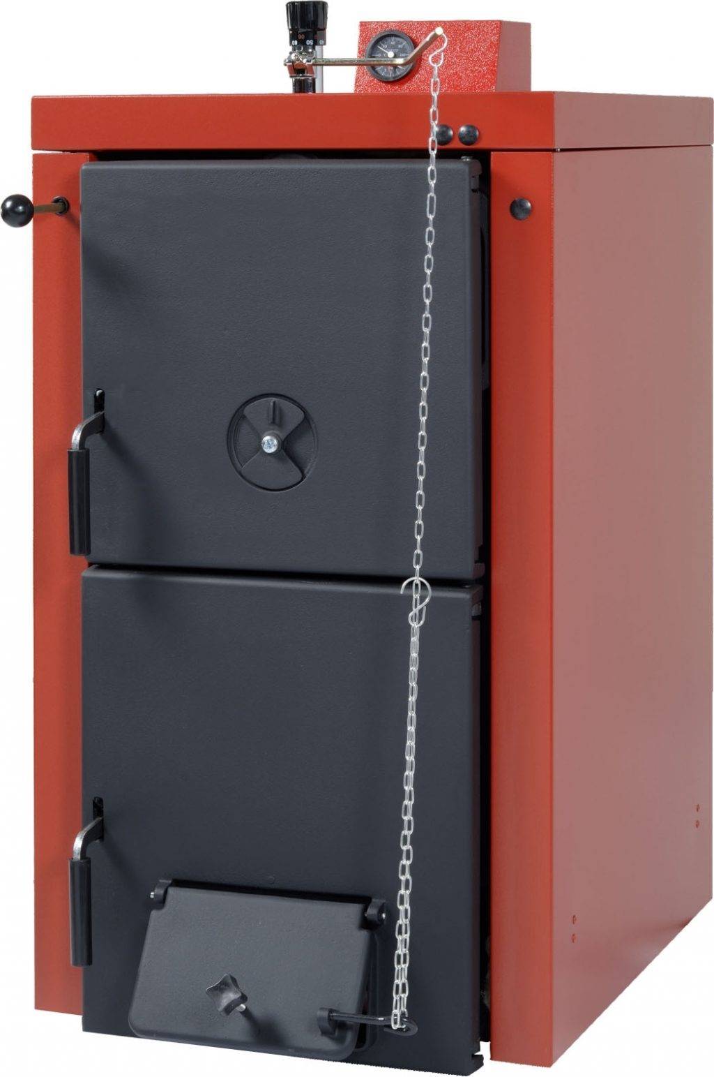 Модель укомплектована терморегулятором, патрубком для подключения дымохода с заслонкой. Механическое управление делает систему энергонезависимой. Встроенные термометр и манометр упрощают контроль над основными рабочими параметрами.