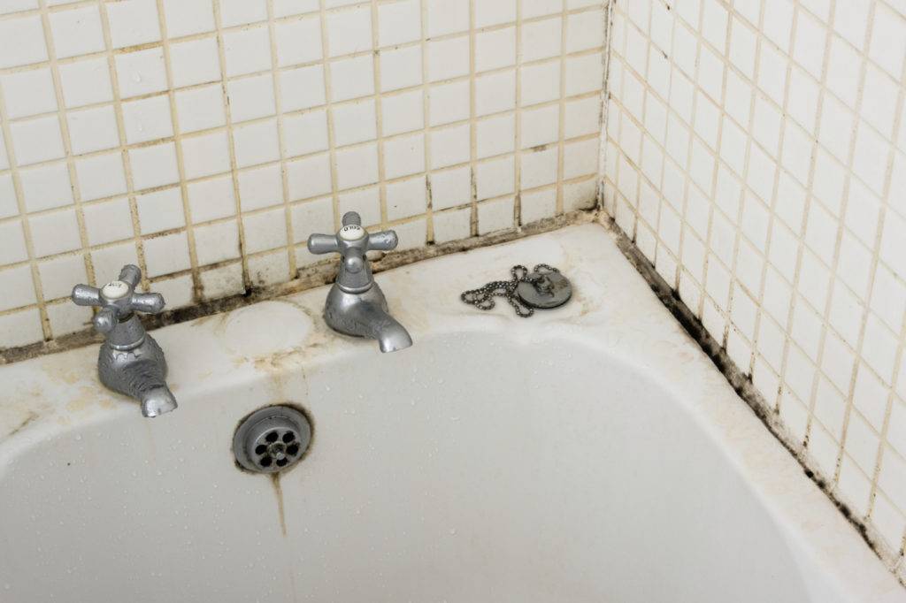 Развивается плесень в швах плитки, на потолке, в плинтусах, на поверхности герметиков и резиновых уплотнителей душевой кабины. Грибок поражает и эмалированную ванну, проникая под микротрещины на ее поверхности. В этом случае придется провести реставрацию ванны или полностью заменить ее.