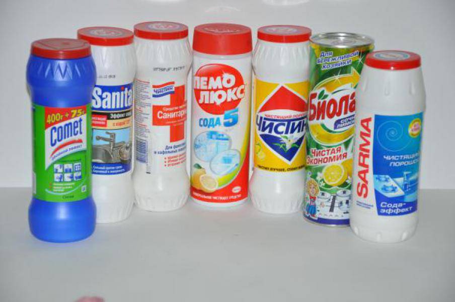 Можно попробовать избавиться от плесени и специфического запаха при помощи порошка «Комет», который на 100% удаляет налет и опасные микробы. Чистящим препаратом «Мистер Мускул» за 1 раз удается удалить жирные пятна и грибок. Биоразлагаемое средство «Сама» не нужно смывать. Оно не вредит продуктам и здоровью человека. Удалит старую плесень, не допустит появление новой. Немецкий препарат Luxus выпускают именно для очищения холодильника. Им можно быстро отмыть загрязнения и устранить неприятный аромат. Luxus предотвращает размножение микробов.