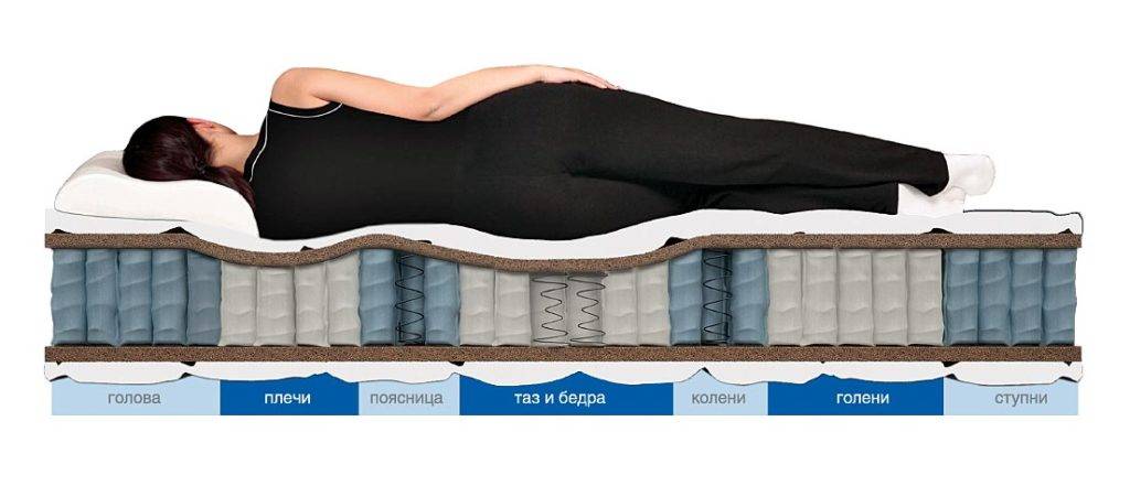 Отличным инженерным решением стало продольное и поперечное зонирование (применение пружин с разной степенью сопротивления в одном изделии). И даже создание многозональных матрасов — с более выраженными анатомическими и ортопедическими возможностями. Количество зон — от 3 до 15!