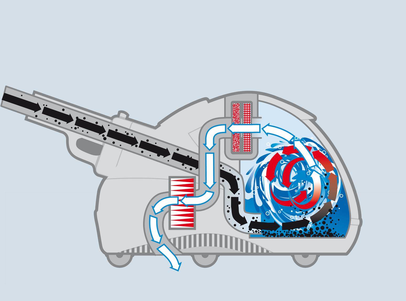 Воздушный поток, который наполняет внутреннюю полость мешка, в момент всасывания собирает мусор с пылью. Чтобы мелкие пылевые частицы не могли проникать через поры мешка, требуется дополнительная установка фильтра на воздушном пути. Фильтр предназначен для предотвращения пылевых наслоений на поверхности электродвигателя пылесоса. При помощи фильтрации воздух очищается от самых мелких пылевых фракций, которые идут на выход из агрегата. Установленный специальный вид фильтра тонкой очистки воздуха уничтожает биологические формы загрязнений: