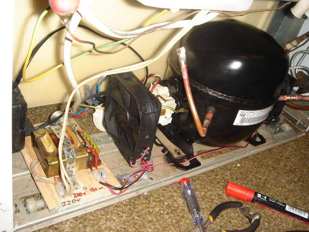 - визуально проверить компрессор – он размещается на задней стенке холодильника снизу; это хрупкая деталь, во время доставки закрепляется транспортировочными болтами; вероятно, их просто забыли снять, придется сделать это самим;