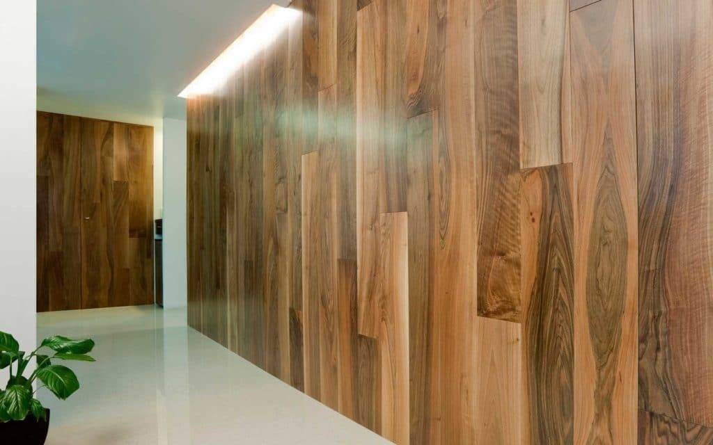 Для коридора стоит подобрать панели, отличающиеся от цвета пола. Лучше всего, если это будут светлые или средние тона дерева – так интерьер будет выглядеть тепло и уютно. Если вы хотите сделать темные стены, то обязательно сочетайте их с большими зеркалами, чтобы не «украсть» драгоценные метры и без того неширокого пространства.