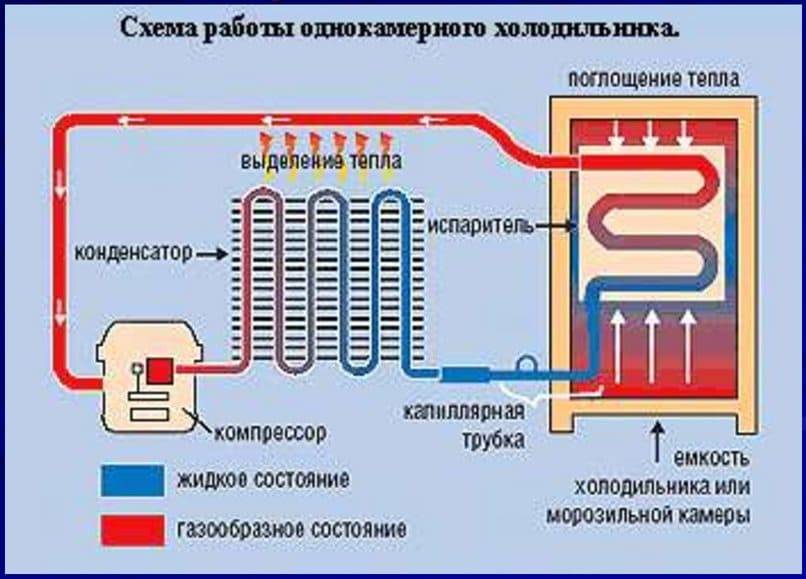 Чтобы понять, как работает холодильник, рассмотрим схему его работы.