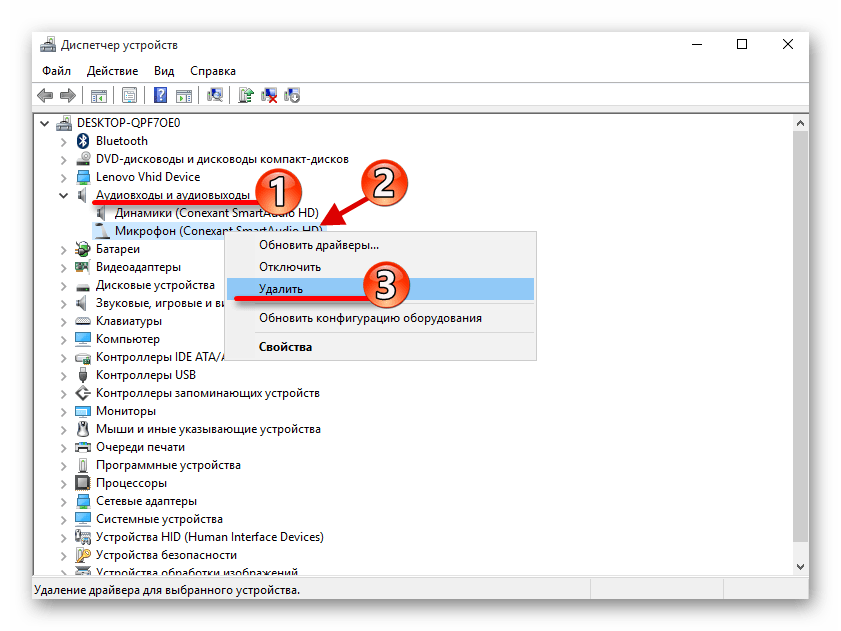 В меню «Микрофон…» кликните «Удалить».