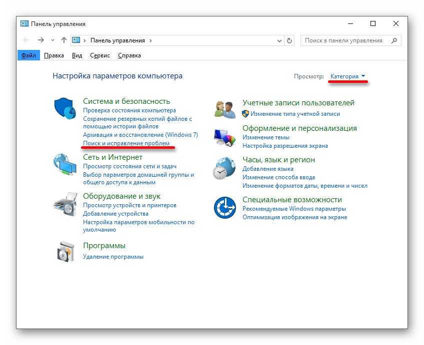 В категории откройте пункт «Поиск и исправление проблем».