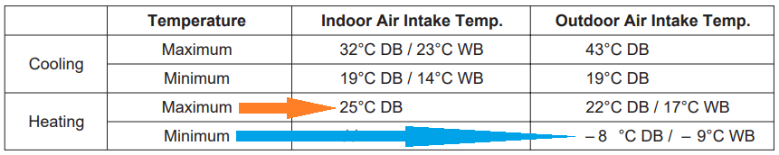 Например, указано что кондиционер может работать на тепло при температуре на улице до -25. А прогревать воздух до +28. Это значит, что: