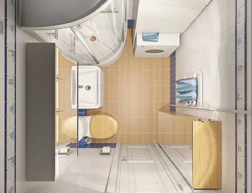 Существует и другой вариант – угловое расположение душевой кабинки.