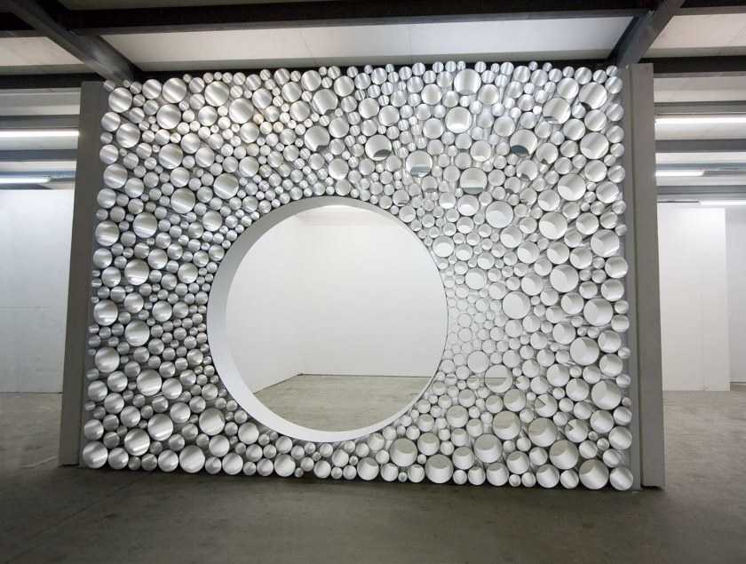 Первоначально необходимо взять трубы, сделать на них соответствующую разметку. Разметка делается таким образом, чтобы в дальнейшем можно было нарезать ровные и одинаковые по толщине кругляшки. Получившееся большое количество деталей, толщина каждой примерно 1 см, можно начинать соединять друг с другом.