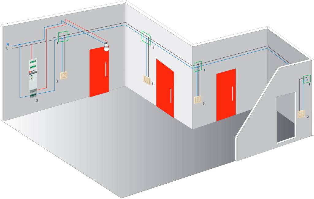 Сравните наглядно схему и количество проводов одного и того же помещения, при монтаже проходных выключателей и импульсных реле.