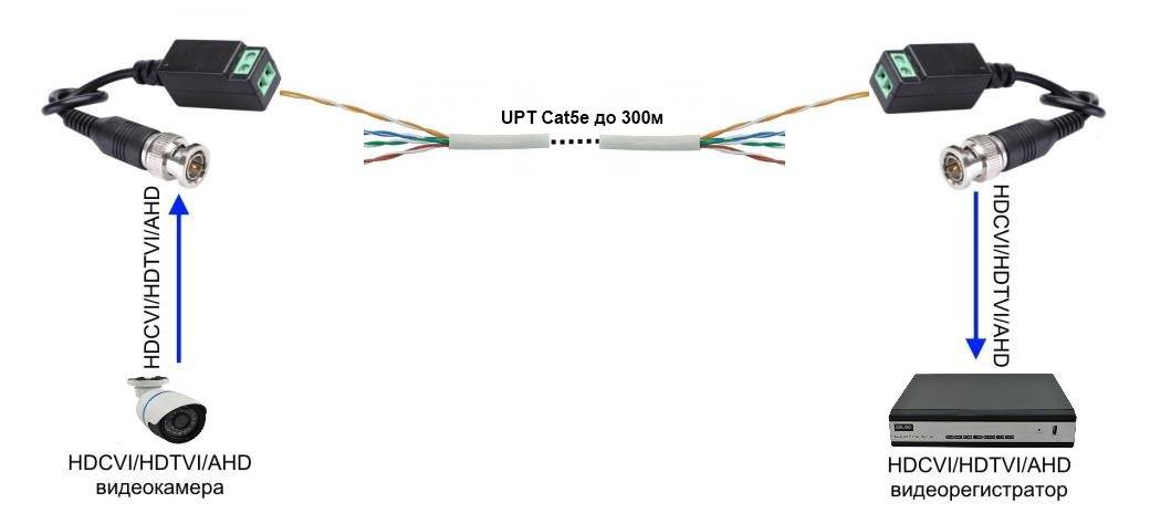 Подключить аналоговую камеру к аналоговому регистратору через витую пару ещё сложнее, нежели к цифровому видеорегистратору. Во-первых, помимо передатчика потребуется приёмник, преобразующий цифровой сигнал обратно в аналоговый. Во-вторых, потребуется правильно настроить приёмник и передатчик, чтобы они увидели друг друга, в противном случае сигнал не дойдёт до регистратора.