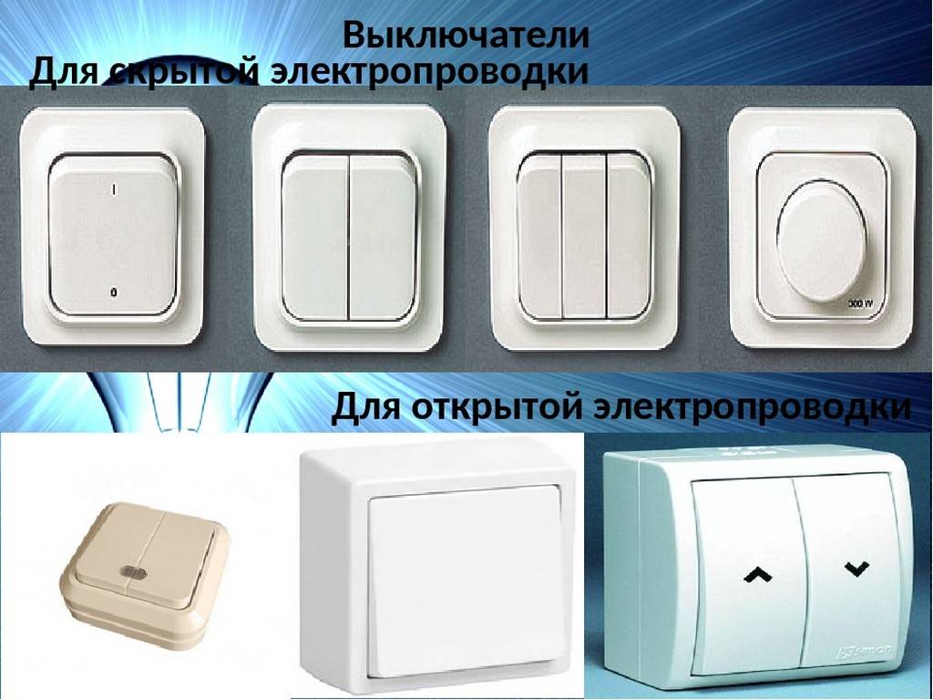 В зависимости от коммутируемой нагрузки, выключатели делятся на: