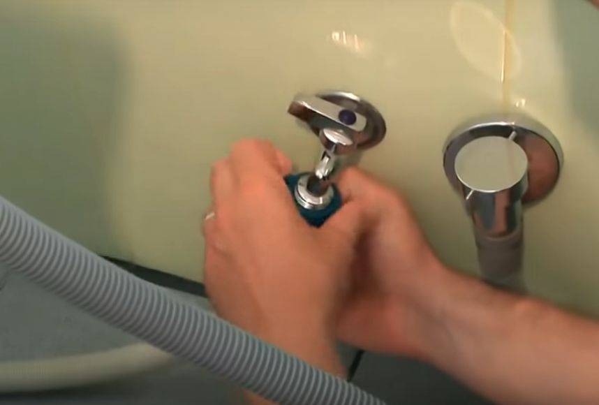После монтажа крана проверяем, идёт ли вода через него. Если всё было сделано правильно, то проблем возникнуть не должно, и можно подсоединять шланг для подачи воды от машинки.