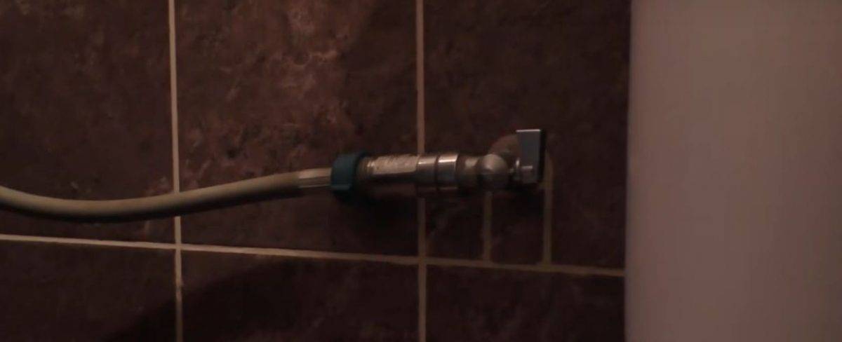 - Подсоедините вентиль, уплотнив соединение ФУМ-лентой или резиновыми (паранитовыми) прокладками, и подсоедините к вентилю шланг от машинки.