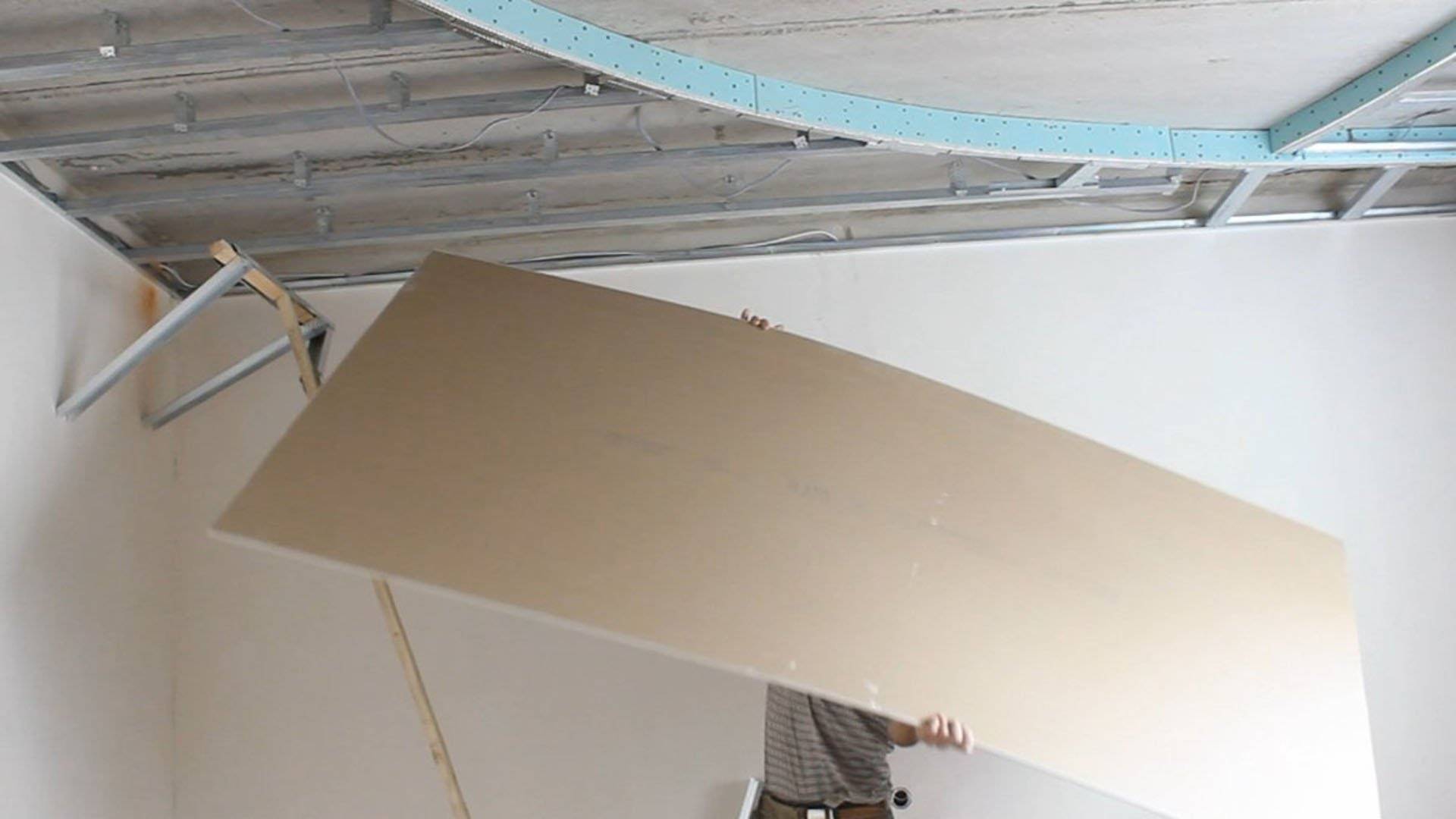 Шаг 4. Закрепите гипсокартон на каркасе потолка как при обычном монтаже подвесного потолка из гипсокартона.