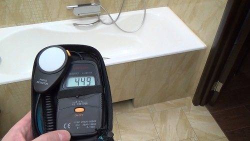 После монтажа светопрозрачного потолка общая освещенность в ванной комнате равнялась 450 лм. Это очень хороший показатель для ванной комнаты. Потребление электроэнергии составило всего 148 ватт.