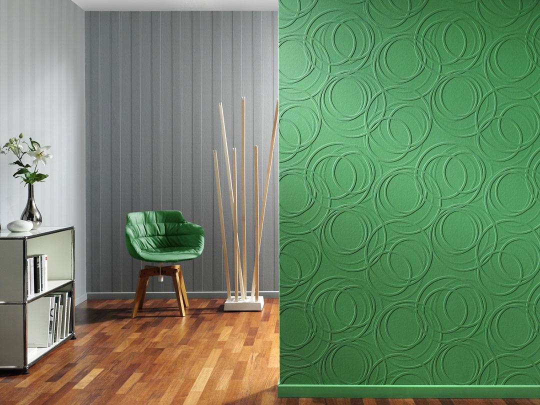 Обратите внимание на возможности окрашивания обоев на флизелиновой основе. Если они имеют однородную структуру, равномерное окрашивание можно обеспечить с помощью обработки наружной стороны полотна