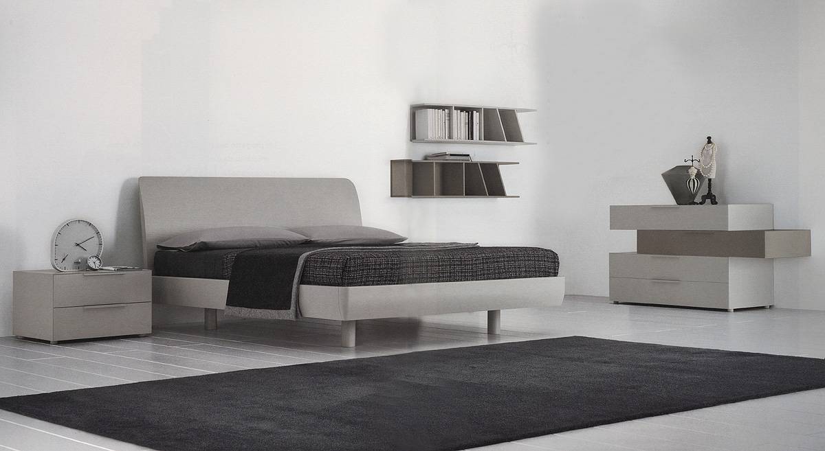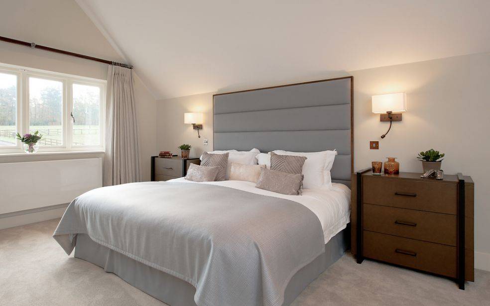 Широкая полка над кроватью добавит интерьеру изыска.