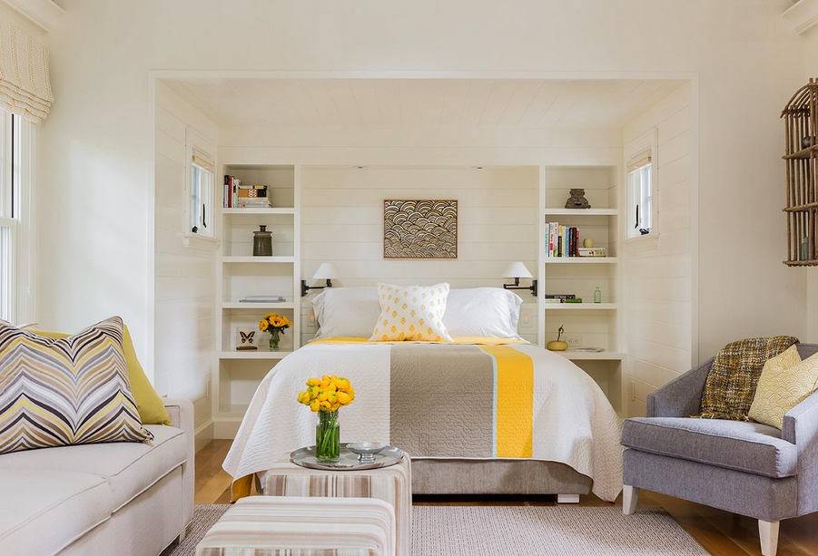 - на стене крупногабаритной спальни допускается размещение стеллажа.