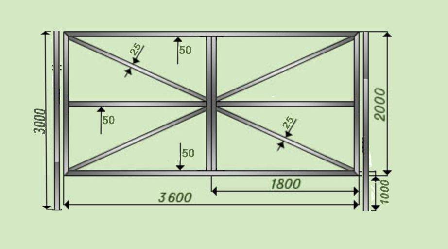 Перед изготовлением делается чертеж ворот с размерами