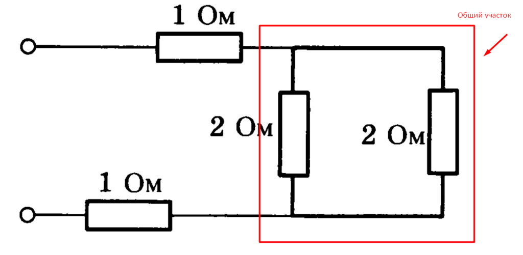 Так, если мы имеем ряд последовательно подключенных резисторов, которые скомпонованы вместе с параллельно соединенными резисторами, то цепь можно разбить на два обобщенных условных участка, где и определить значимый параметр.