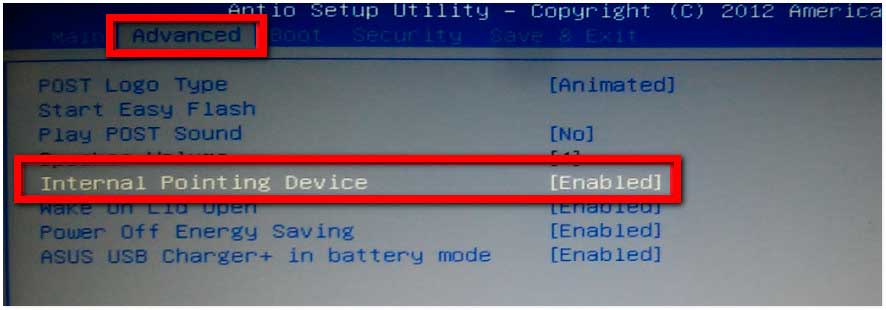 Кроме того, тач-пад может оказаться отключенным в BIOS. Соответствующая настройка обычно находится в разделе «Advanced» и называется «Internal Pointing Device».