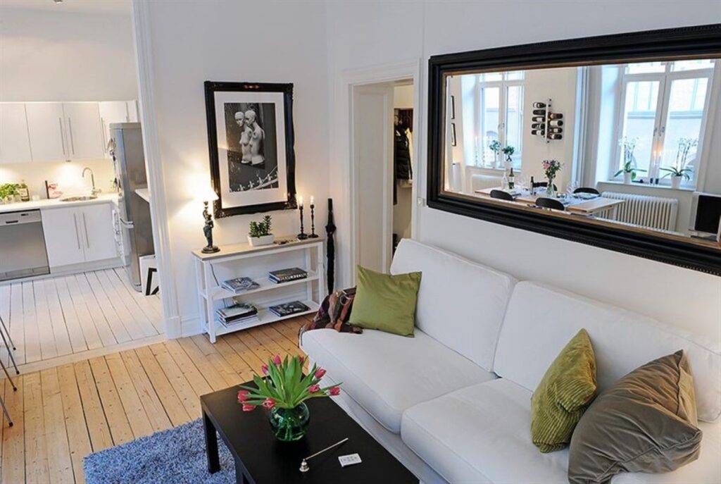Расширение пространства в помещении. Поэтому зеркала часто устанавливаются в малогабаритных комнатах.