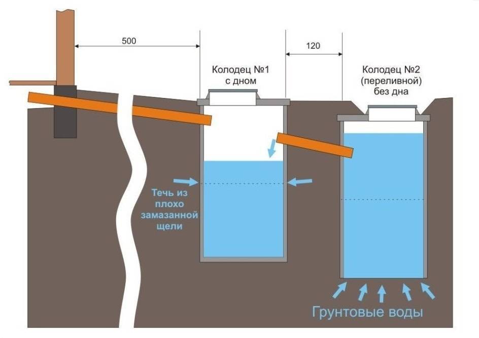 Устройство септика из двух резервуаров: схема
