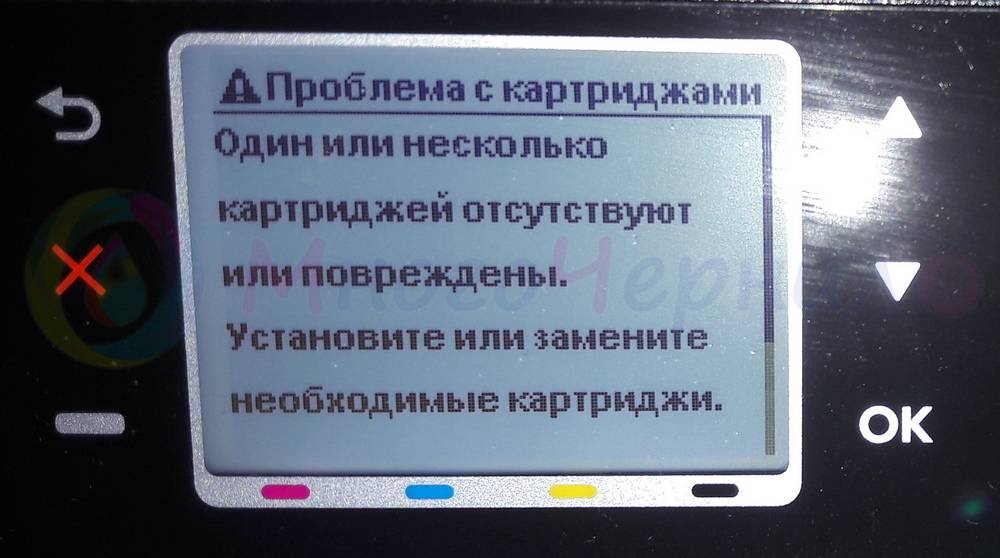 Если же какой-либо из оригинальных картриджей не определится, то необходимо попеременно вытаскивать и вставлять другие оригинальные картриджи для понятия ситуация — проблема с конкретным картриджем или определяюся картриджи без одного любого.
