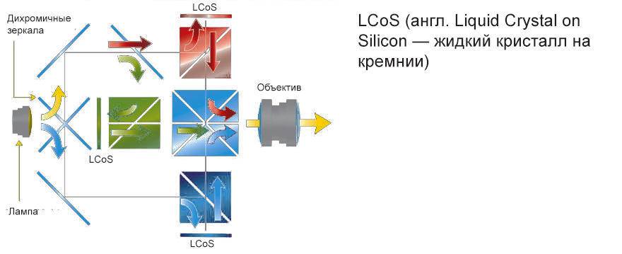 Технология LCoS – гибридная смесь рассмотренных выше принципов работы проекционного оборудования. Это проекторы премиум класса, которые стоят чрезвычайно дорого. Поэтому они не пользуются особой популярностью. Некоторые LCoS модели способны на равных соперничать с дорогостоящими телевизорами. Они абсолютно не проигрывают ТВ в плане яркости и контрастности изображения.