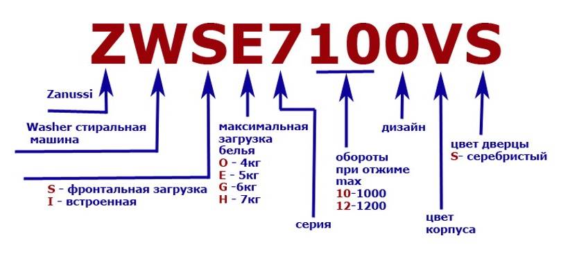Стиральные машинки Занусси имеют характерные особенности. Какие именно можно понять из расшифровки маркировки в инструкции или на упаковке. Первая цифра означает скорость вращения барабана. Например, 10 – это 1000 об/мин, 5 – 500 об/мин. Вторая цифра говорит о годах выпуска – от 0 до 9. Последняя цифра, которая идет после букв, показывает количество кнопок на панели управления – от 0 до 9.