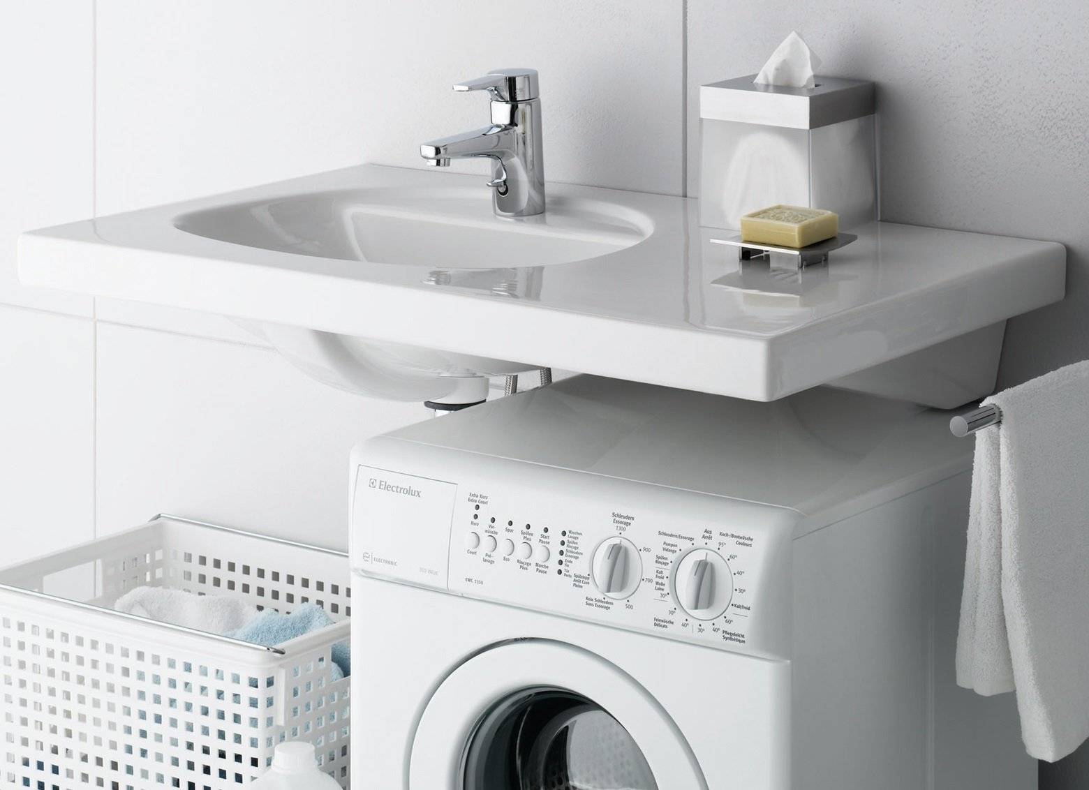 Плюсы и минусы расположения умывальника над стиральным аппаратом