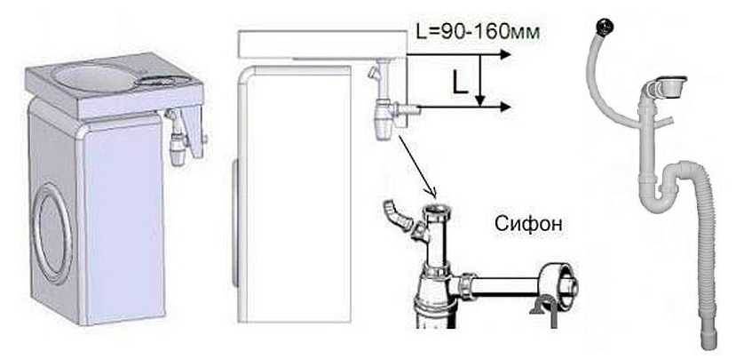 - так как стиральная машинка – это все же электрический прибор, контакт с водой для него опасен, если в сифоне раковины образуется протечка, стекающие капли воды могут повредить бытовой аппарат.