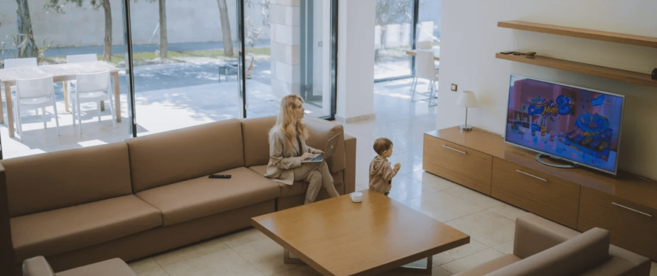 Чем больше телевизор, тем больше от него должно быть расстояние к смотрящему. При соблюдении этого параметра удается добиться оптимального угла обзора и снизить нагрузку на органы зрения.