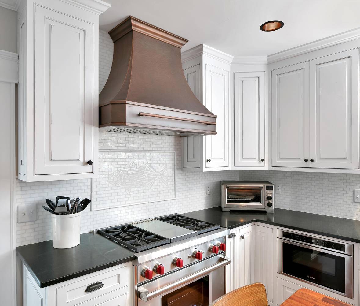 При обустройстве кухонного пространства особое внимание необходимо уделить расстоянию от плиты до вытяжки