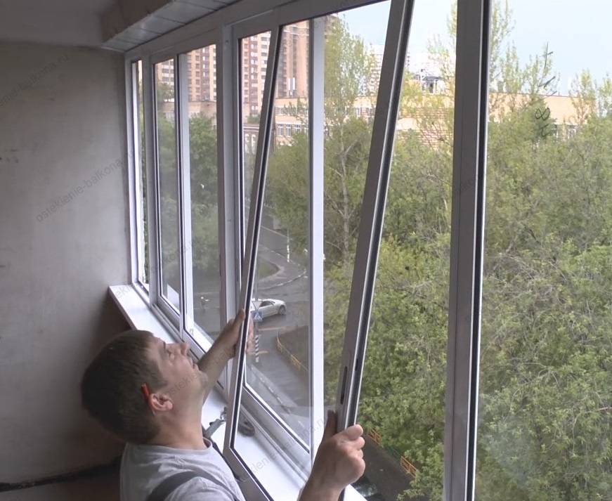 При остеклении балкона раздвижными окнами из пластика монтаж происходит следующим образом: