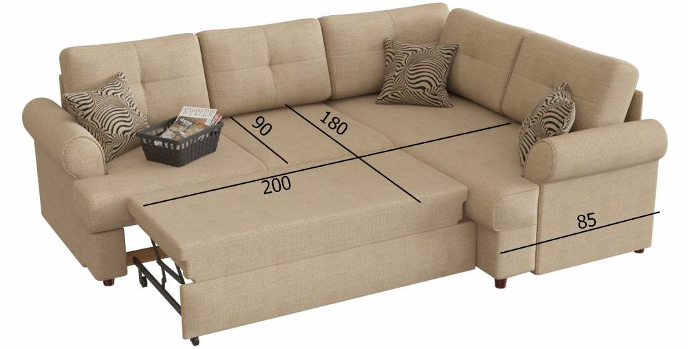Размеры раскладных диванов также должны указываться изготовителем или продающей компанией, причем как в исходном состоянии мебели, так и после трансформации.