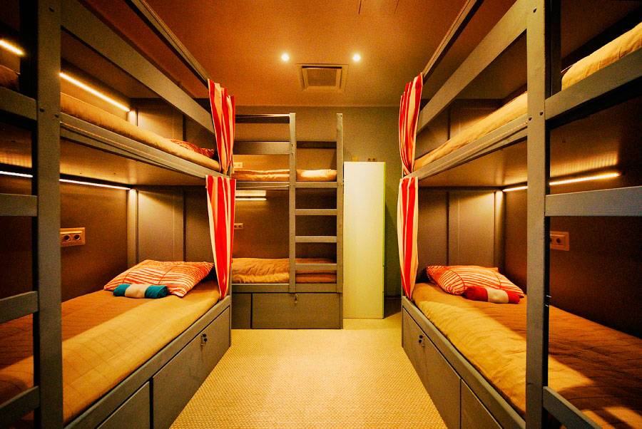 Двухэтажные односпальные кровати. Самый компактный вариант, занимающий минимум пространства и используемый чаще всего как гостевое спальное место в квартирах, хостелах и других подобных заведениях.