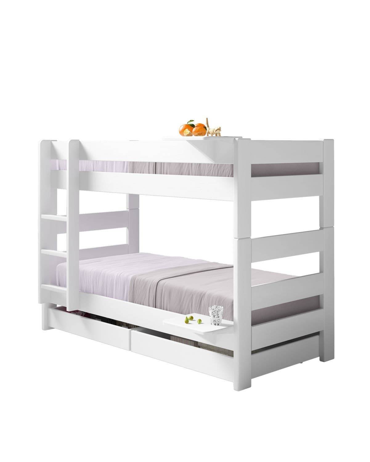 Самый простой вариант, состоящий из двух ярусов, на которых ровно друг под другом расположены спальные места, и встроенной лестницы.