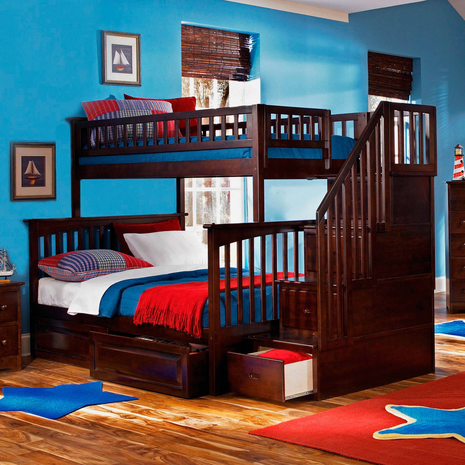 Конструкция двухъярусной угловой кровати с системой спальных мест имеет лестницу, по которой дети с большим удовольствием карабкаются на второй этаж. Но наряду с достоинствами двухуровневых кроватей, существует один немаловажный недостаток – по своей конструкции это очень травмоопасное сооружение.