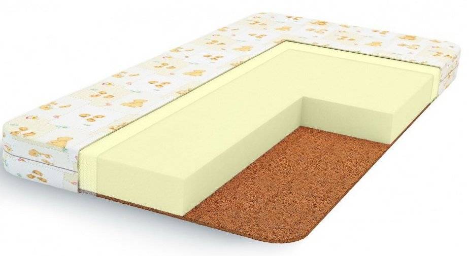 Кокосовая койра. Кокосовое волокно гипоаллергенно, не впитывает влагу, отлично вентилируется и, как следствие, не подвержено гниению. Прослойки койры — прочная основа, грамотное введение которой обеспечивает отличную поддержку спинке малыша. Среди основных недостатков можно выделить высокую цену, и относительную хрупкость природного материала. В случае чрезмерного изгиба может произойти излом кокосового полотна.