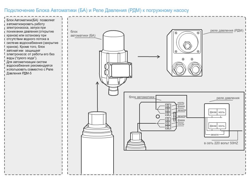 Схема подключения реле давления воды к погружному насосу