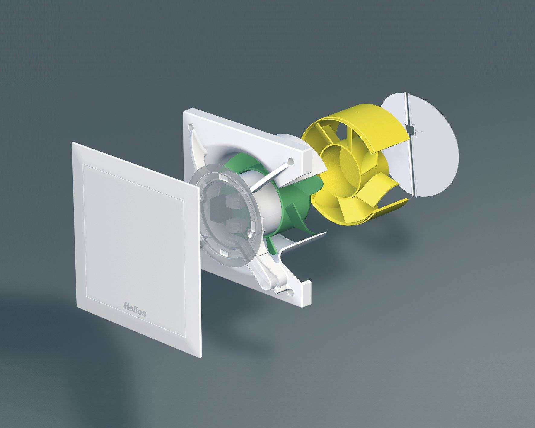 Вытяжной вентилятор с обратным клапаном предотвращает проникновение пыли и воздуха из вентиляции в помещение. Также он оснащается таймером задержки отключения в интервале от 2 мин до получаса. Это позволяет оставлять устройство включенным, не боясь, что оно продолжит работать без присмотра. Экономичный электродвигатель защищен от влаги, а крыльчатка специальной формы отличается бесшумностью. Чтобы устройство было легче интегрировать в дизайн, производителем был предусмотрен широчайший выбор цветовой гаммы фасадов. По желанию вентилятор можно купить в золотом, серебристом, черном или белом оформлении.