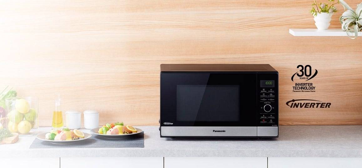 Инверторное управление микроволновкой – технология, предполагающая наличие широкого круга функций и опций в каждой модели. Так большинство инвенторных печей оснащено функцией гриля. Причем, этот процесс может осуществляться ТЭНом либо кварцевой лампой. При наличии кварцевого элемента на продуктах образуется аппетитная корочка, напоминающая блюдо, приготовленное на костре. Некоторые модели инвенторных микроволновок Панасоник могут быть оснащены двумя видами гриля.