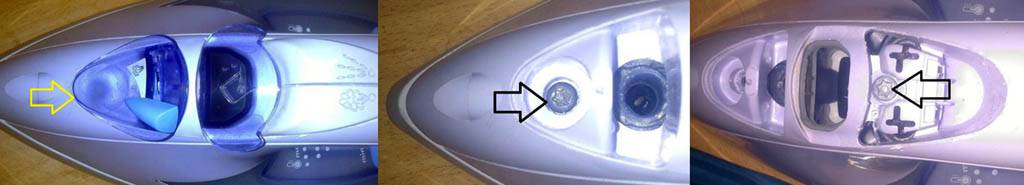 Чтобы разобрать утюг, надо обследовать его острую часть, где имеется одна точка крепления. Например, утюг Philips прячет саморез под ручкой регулировки пара. Чтобы выкрутить винт, следует повернуть ручку до конца влево и потянуть вверх. После удаления регулировочного узла можно открутить саморез. В модели «Браун» винт прячется под крышкой форсунки. Вынуть форсунку можно, слегка потянув на себя. После ее удаления открывается свободный доступ к винту. Другие саморезы или защелки располагаются под задней крышкой прибора.