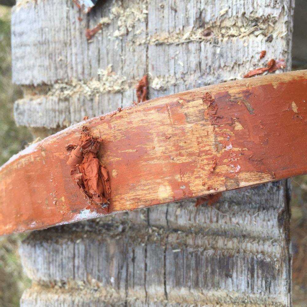 - Сколы деревянной поверхности стула — серьезный дефект, но и он устраняется шпаклевкой для дерева. Высохнув, она полностью имитирует древесину.
