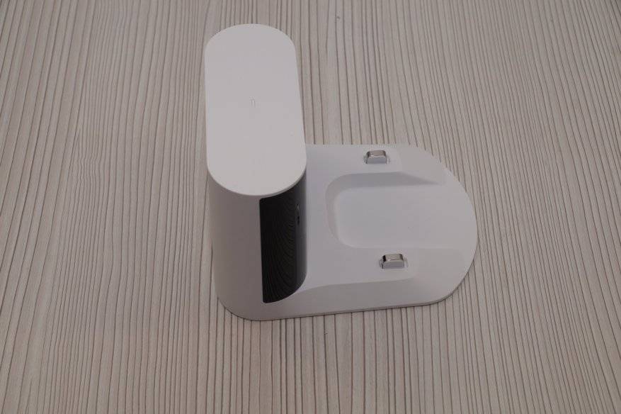 Затем само устройство Xiaomi Mi Robot (SDJQR01RR) вставляют в базовую станцию. Когда задние контакты будут установлены правильно, подсветка на верхней панели начнет мигать.