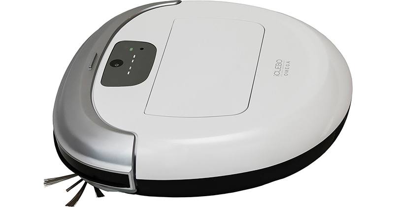 ICLEBO Omega, 53 Вт, белый/серебристый – тщательно соберет мелкий сор и пыль. Оснащен функцией мытья полов. Можно задать начало и конец уборки.
