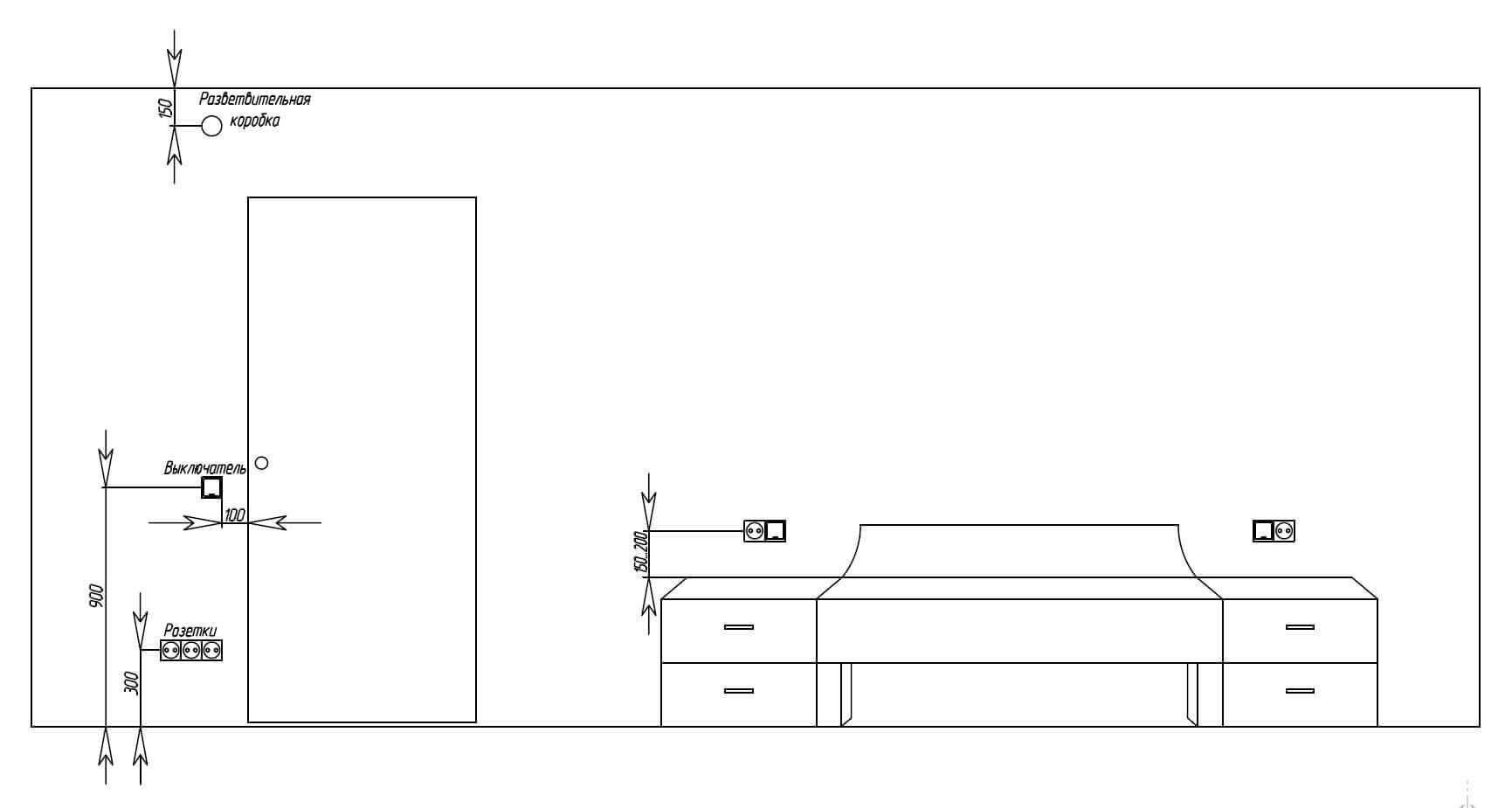 - высота размещения розеток от уровня плинтуса должна быть не более 2 метров;